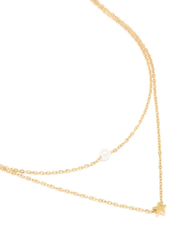 Waterproof Gold Plated Stainless Steel Layered Chain Y-Necklace