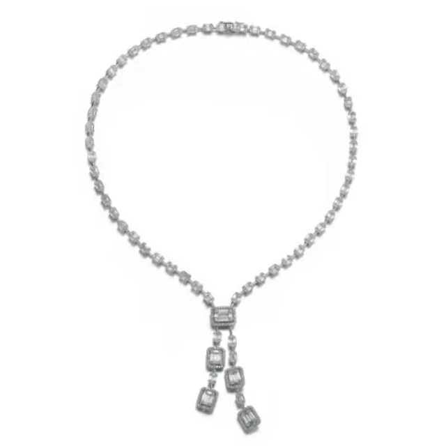 Sterling Silver White Gold Plated Cubic Zirconia Square shaped Necklace