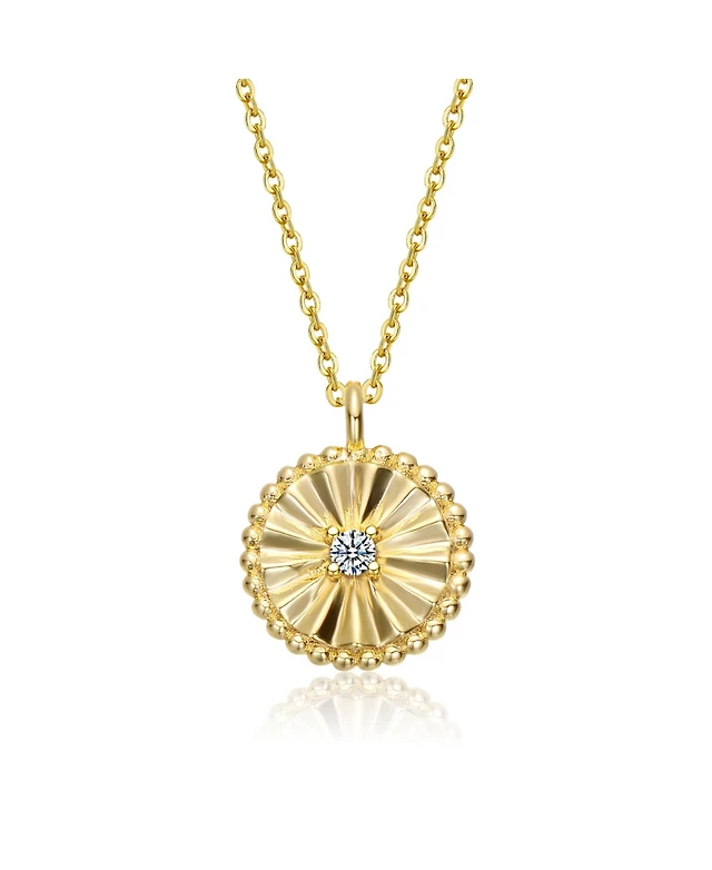 Sterling Silver 14k Gold Plated Cubic Zirconia Textured Circle Pendant Necklace