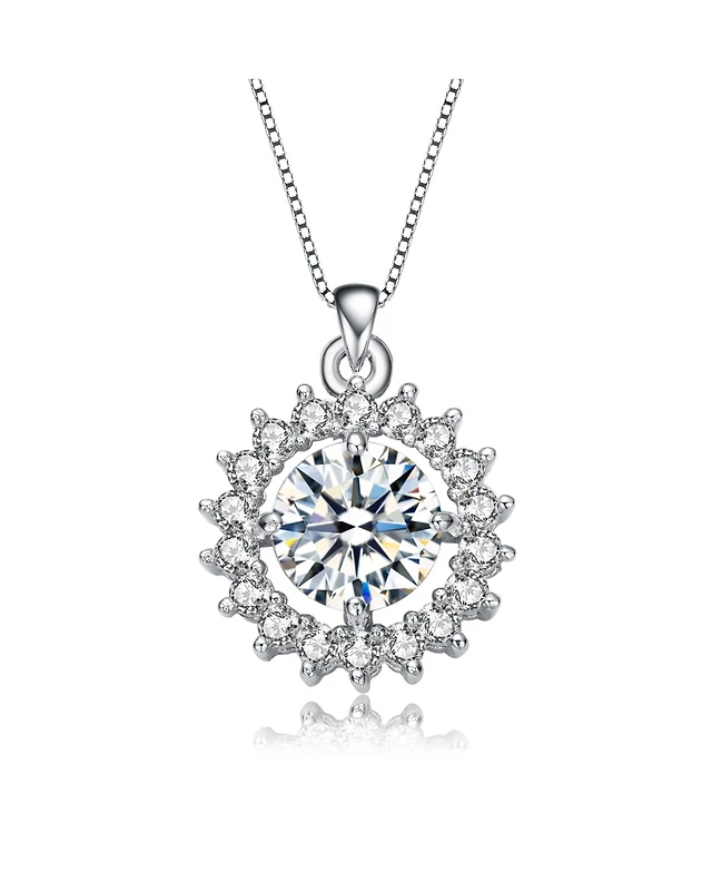 Sterling Silver White Gold Plated with White Cubic Zirconia Accent Necklace