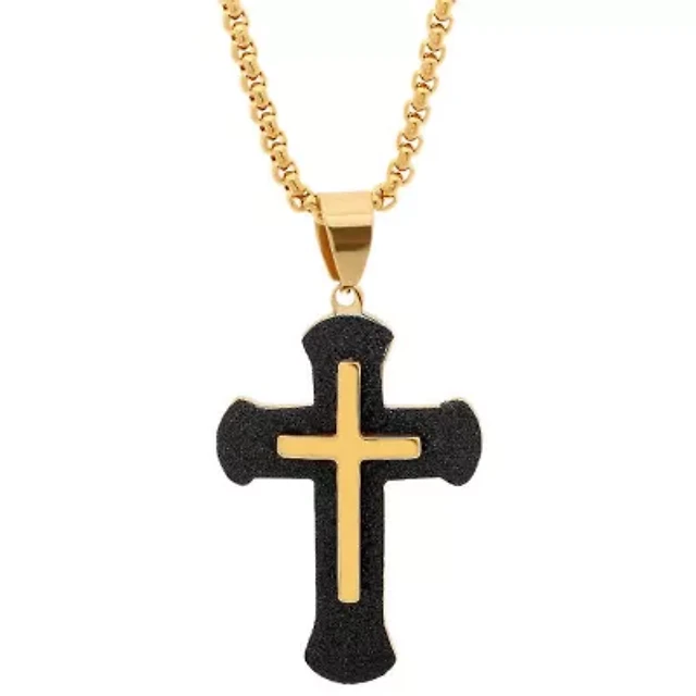 Steeltime Men's 18K Gold Plated and Simulated Diamond Spinning Cross Pendant Necklace