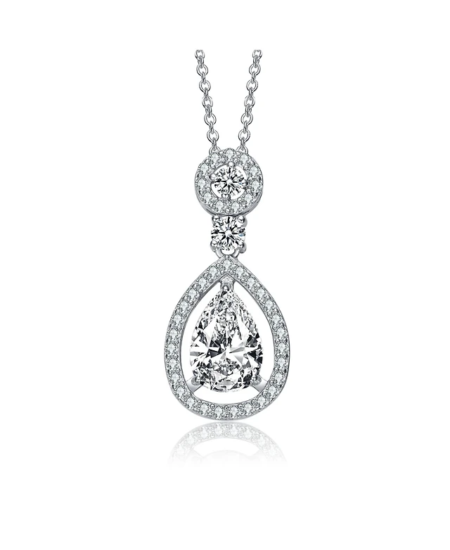 Sterling Silver 18K Rose Gold Plated with Colored Cubic Zirconia Teardrop Necklace