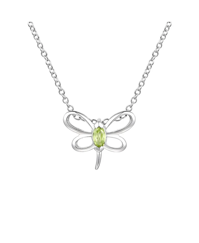Simulated Malachite & Cubic Zirconia Butterfly Pendant Necklace in 14k Gold-Plated Sterling Silver, 18" + 2" extender