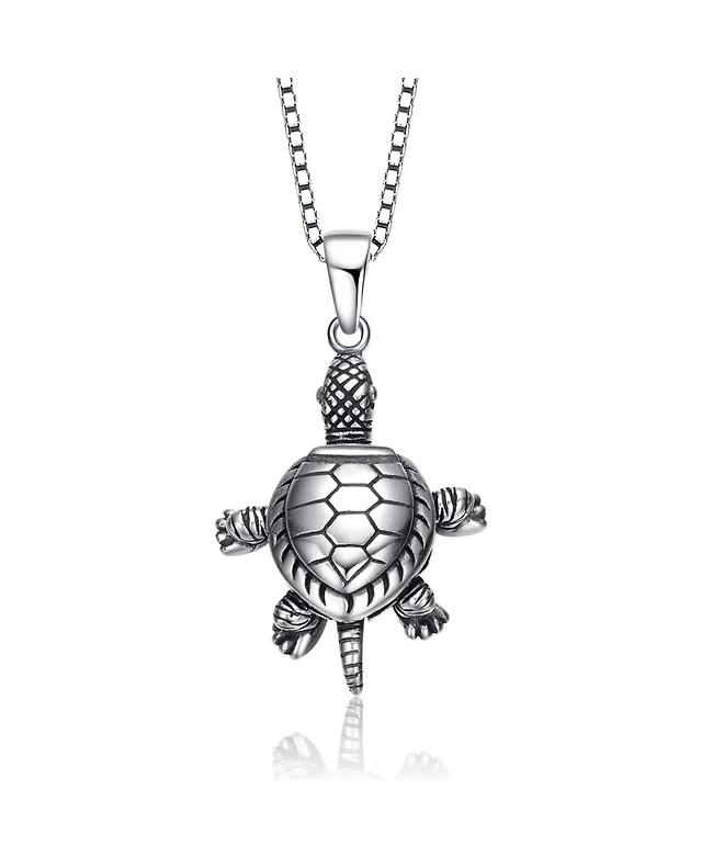 Sterling Silver with Rhodium Plated Turtle Pendant Necklace