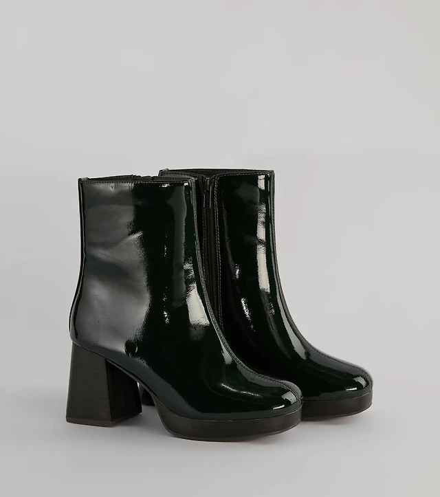 Seize The Moment Patent Block Heel Booties