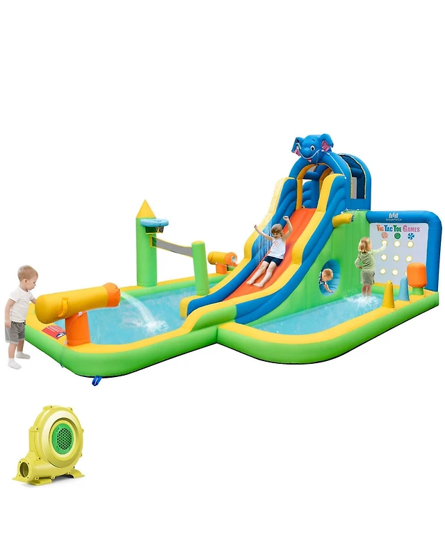 7-In-1 Water Slide Park with Splash Pool and Water Cannon with 680W Blower