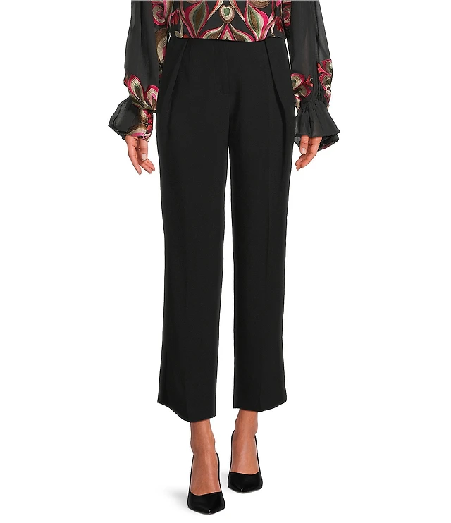 Donna Karan Ponte Pleated Slim Leg Faux Pocket Pants