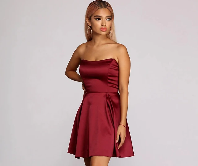 Paola Strapless Twill Party Dress