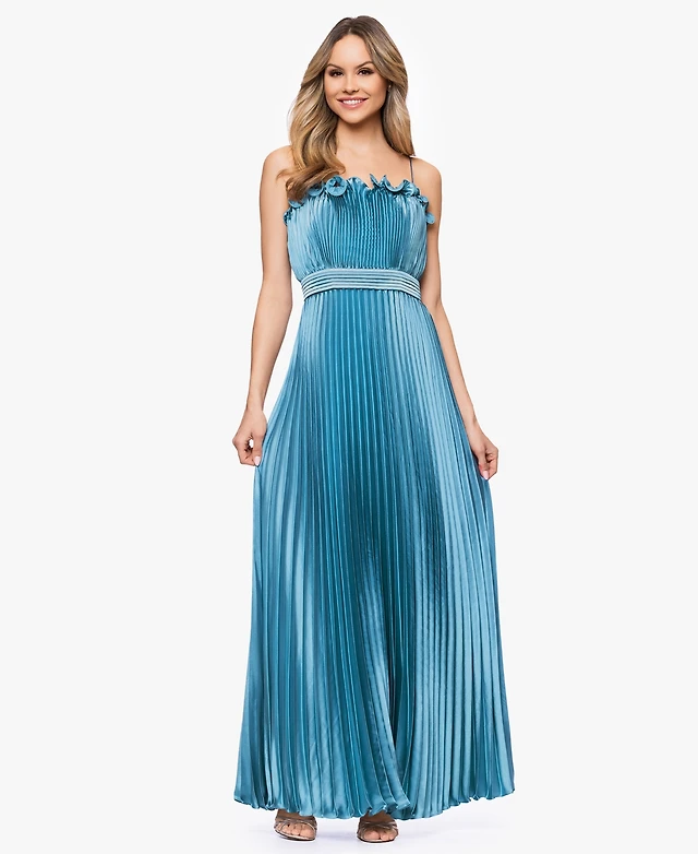 Betsy & Adam Women's Pleated Strapless Gown