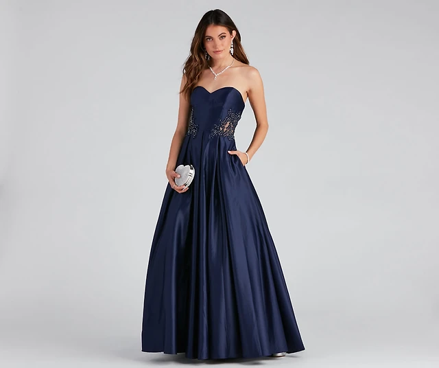 Alex Pleated Satin Ball Gown