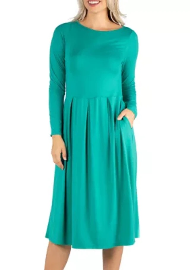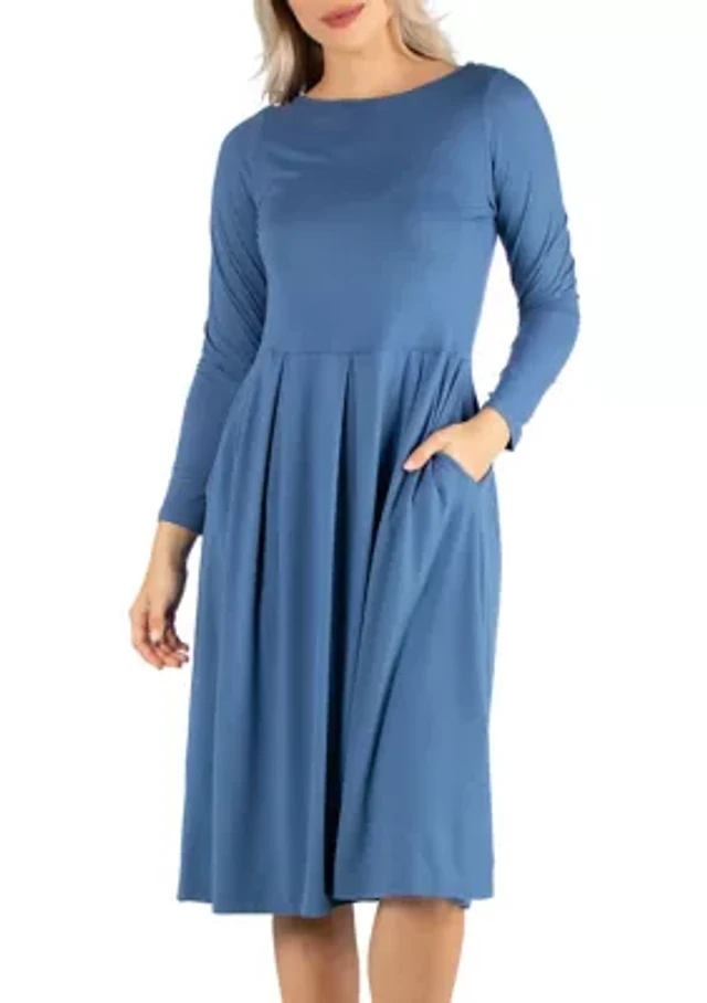 Women's Midi Length Fit-and-Flare Pocket Dress