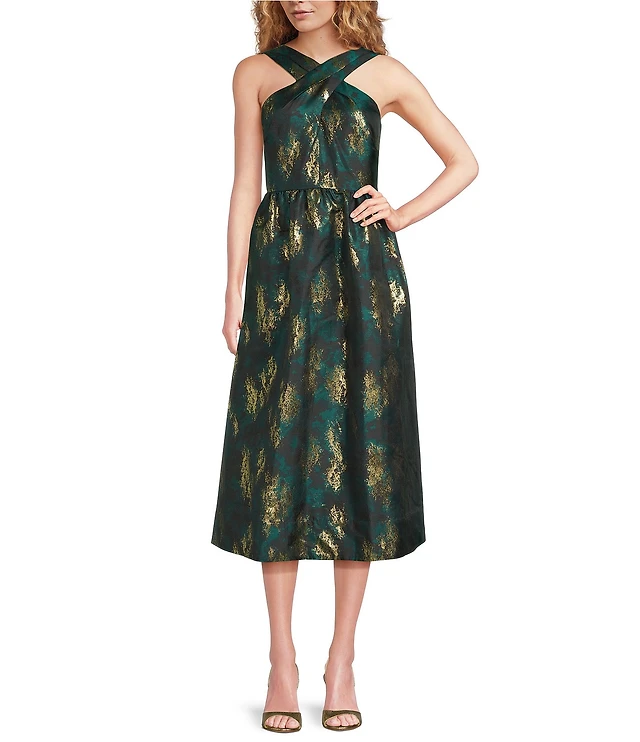 Coya Collection Embroidered Deep V-Neck Low Back A-Line Dress
