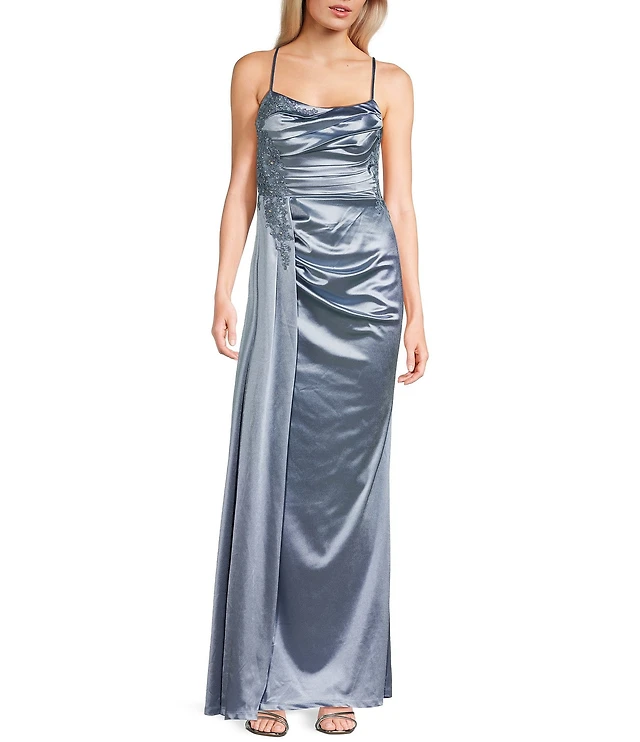 Blondie Nites Satin Sweetheart Pinch Front Lace-Up-Back Long Dress