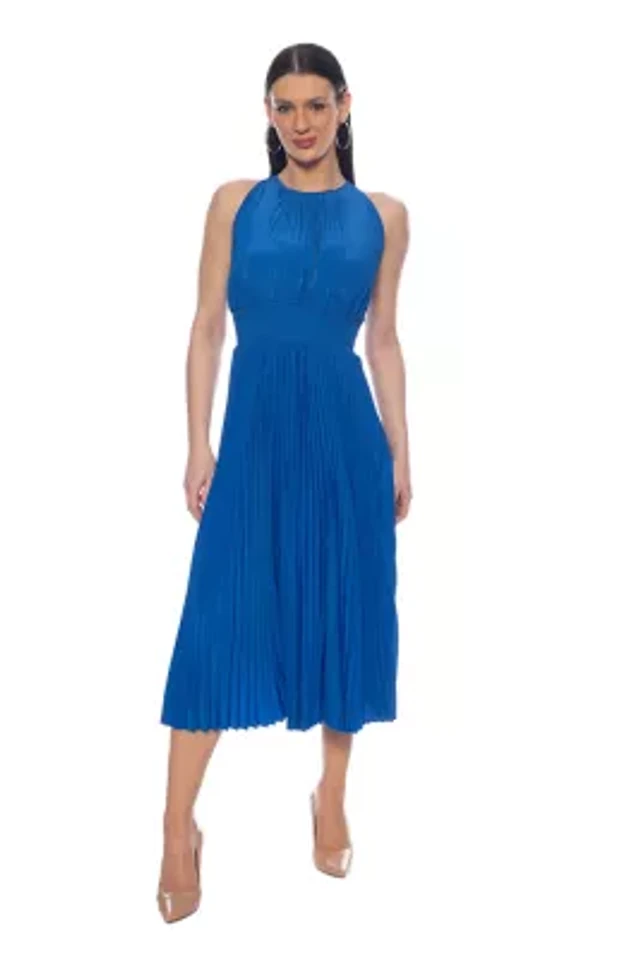 Dkny Women's Sleeveless Pleated Boat Neck Midi Dress