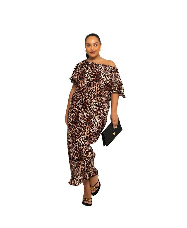 Fashion-szn Curve Women's Bold Leopard Plisse Midi Dress