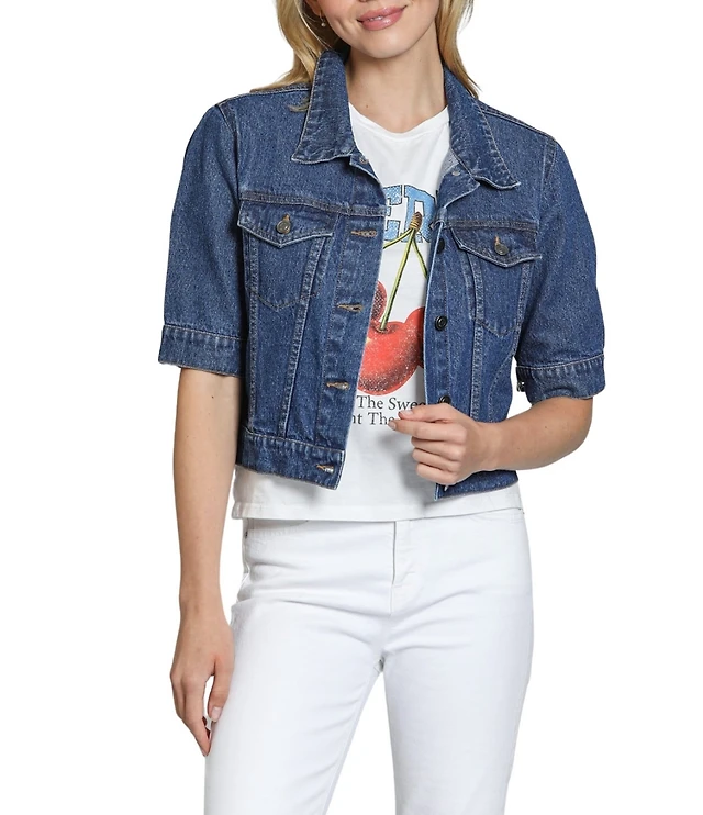Steve Madden Women's Raleigh Printed Collared Trucker Jacket
