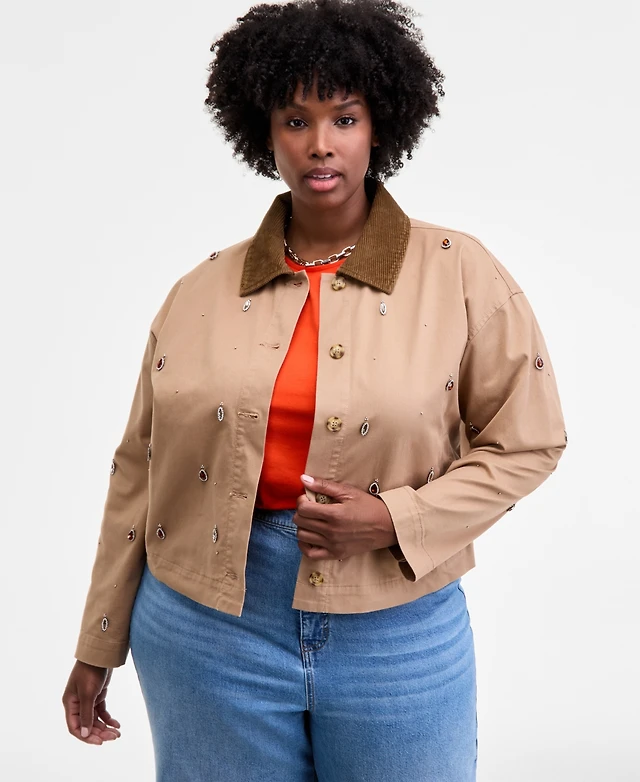 Anne Klein Plus Size Notch Collar Long Sleeve Zipper Moto Jacket