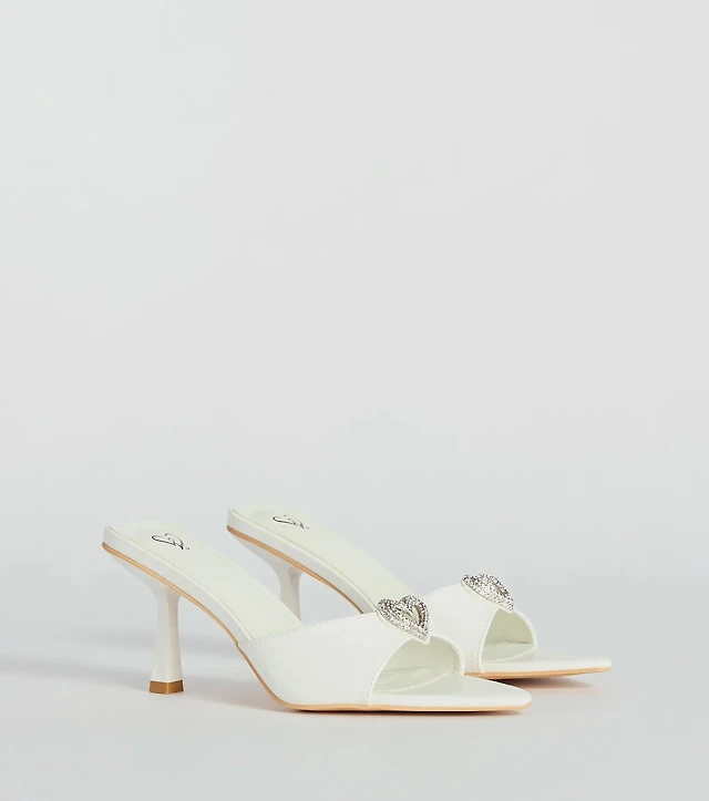 Heart Stopper Rhinestone Faux Leather Stiletto Heels