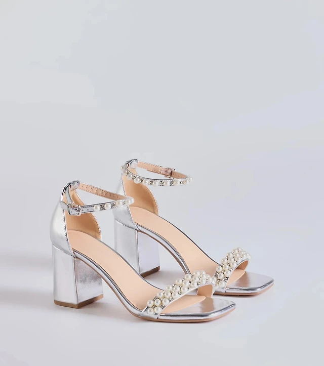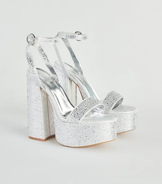 A Moment Of Luxe Rhinestone Trim Block Heels
