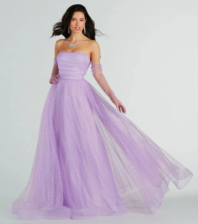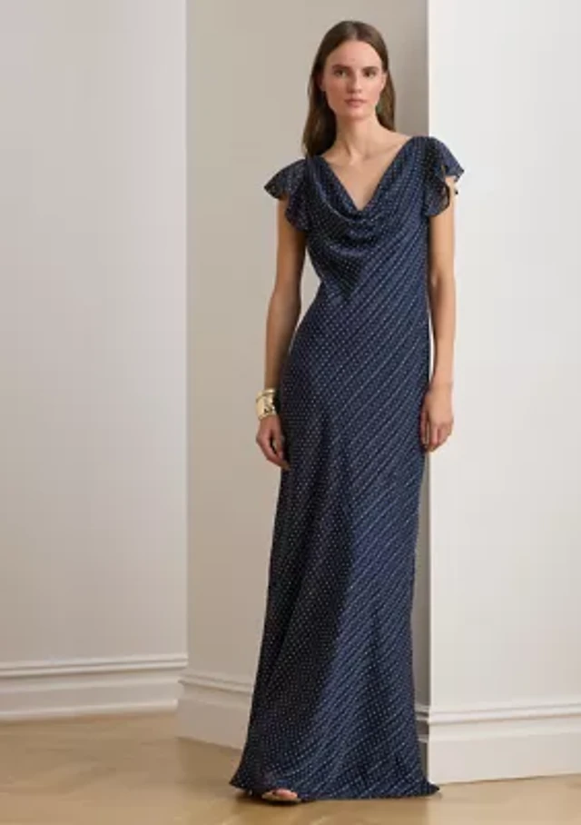 Aria Ruffled Off-The-Shoulder Polka Dot Mesh Formal Dress