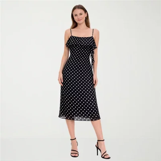 Perceptions Womens Sleeveless Polka Dot Midi Fit + Flare Dress