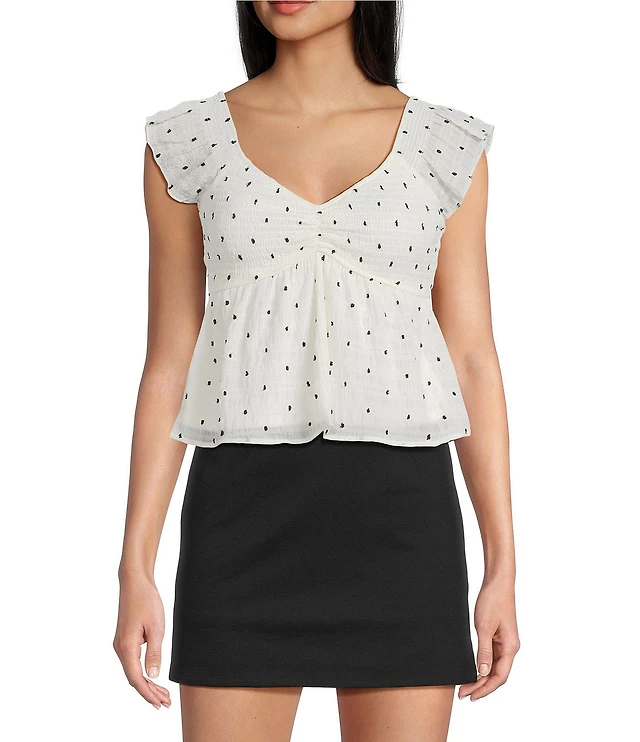 Hello Miz Women's Swiss Dot Flutter Cap Sleeve V-Neck Maternity Top