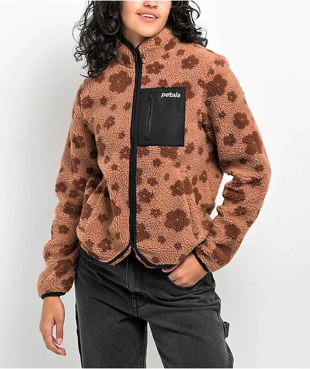 Petals by & Peacocks Flower Brown Sherpa Zip Jacket