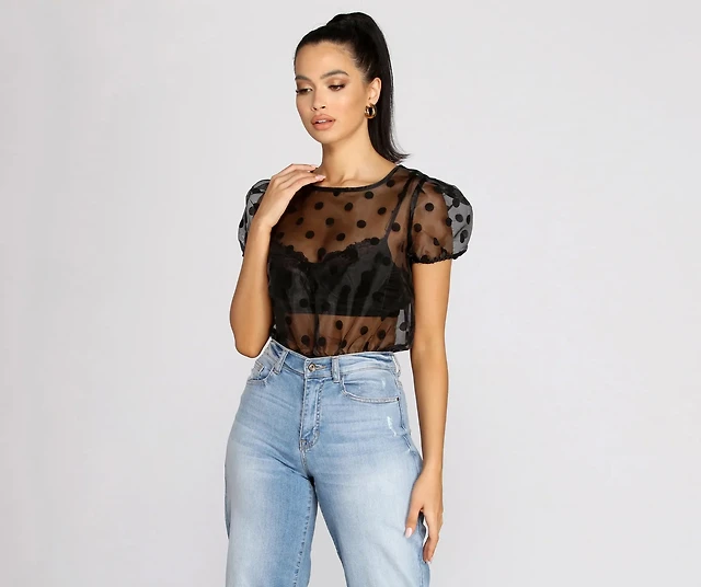 Spot On Polka Dot Organza Sleeve Bodysuit