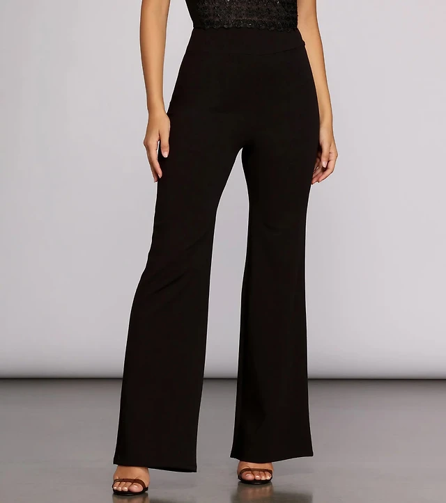 Women's Stretch Crepe Extend Tab Wide Leg Pant