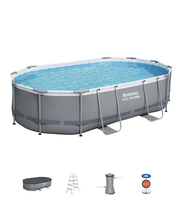 Bestway Power Steel 18' x 9' x 48" Oval Above Ground Outdoor Swimming Pool Set