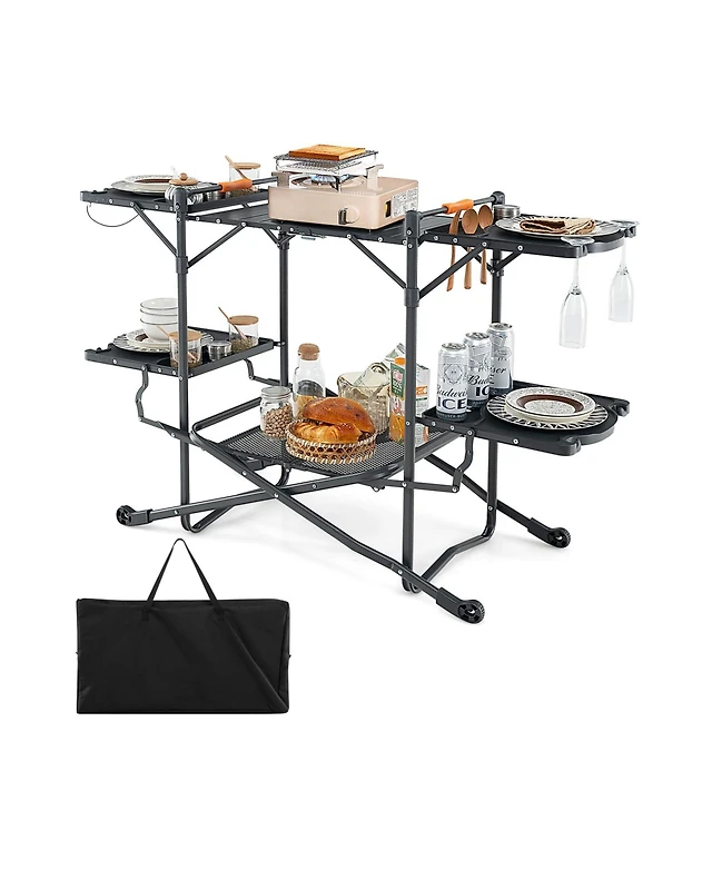 Portable Charcoal Grill with Thermometer & Wooden Handle