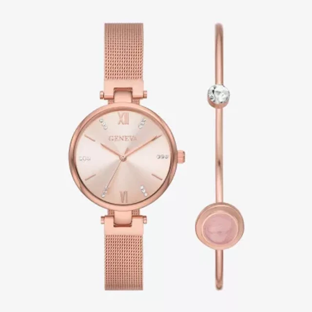 Geneva Womens Crystal Accent Silver Tone 2-pc. Watch Boxed Set Fmdjset074