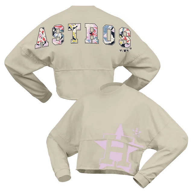 Women's Fanatics Cream Houston Astros Floral Preppy Cropped Long Sleeve T-Shirt