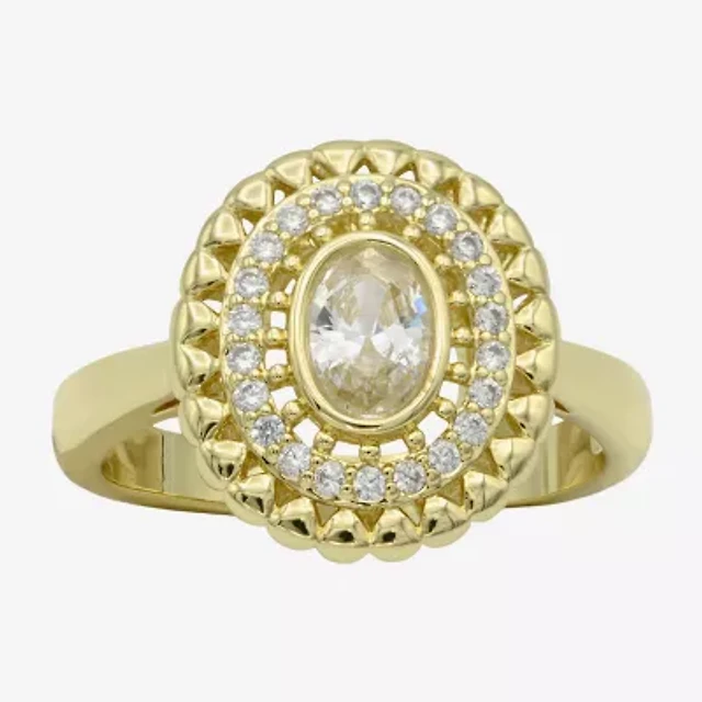 Sparkle Allure Womens Cubic Zirconia 14K Gold Over Brass Round Engagement Ring