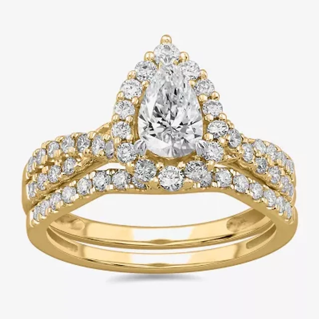 (H-I / Si2-I1) Womens 1 1/2 CT. T.W. Lab Grown White Diamond 10K or 14K Gold Round Side Stone Bridal Set