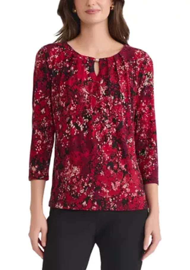 Women's 3/4 Cha Sleeve Keyhole Paisley Blouse