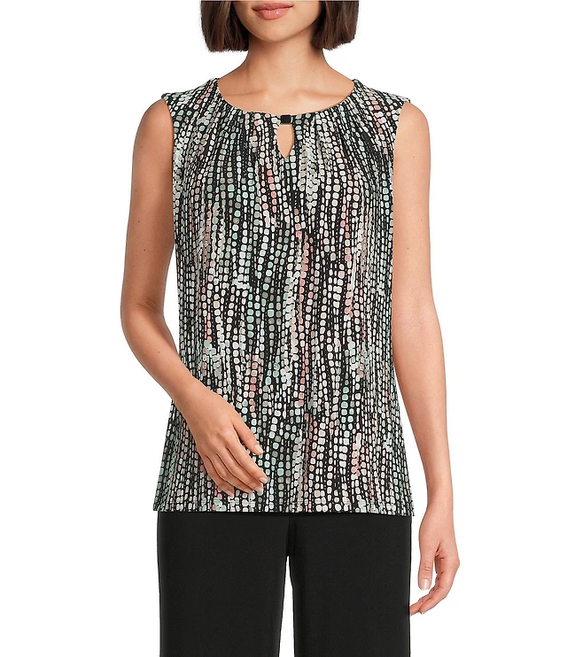 Donna Karan Printed Draped Mock Neck Sleeveless Top