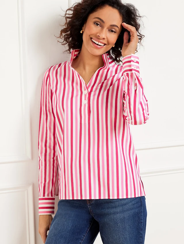 APNY Woven Printed Point Collar Long Sleeve Boyfriend Shirt