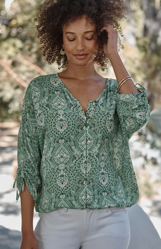 Petite Printed Triple Pleat Top