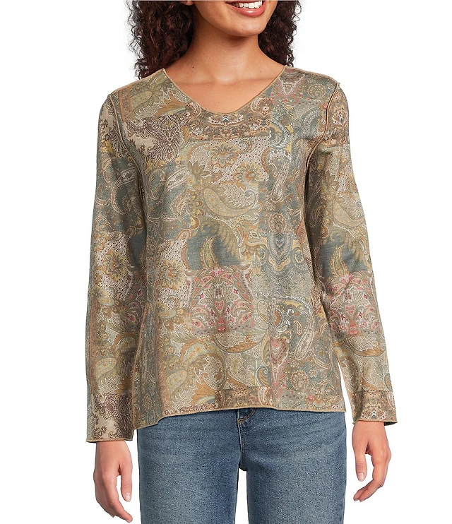 Petite Jacobean Paisley Puff Print Top