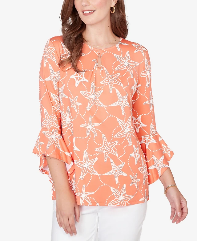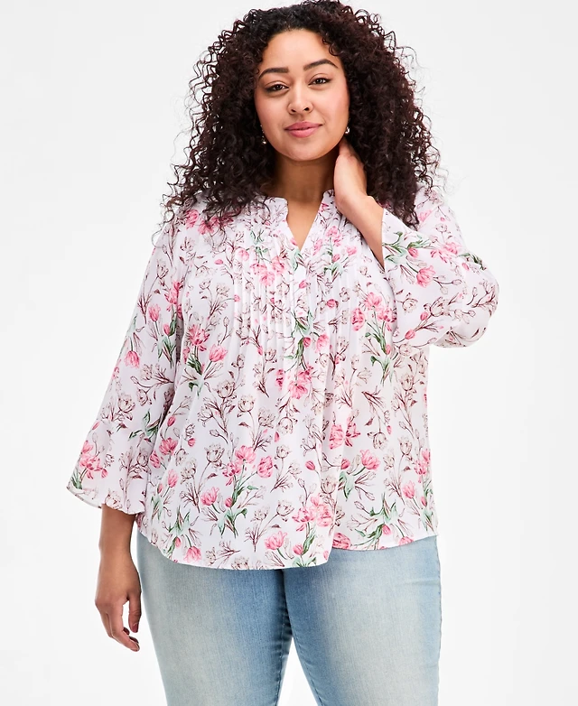 Style & Co Women's Printed Pintuck Ruffle Sleeve Top, Macy's Exclusive