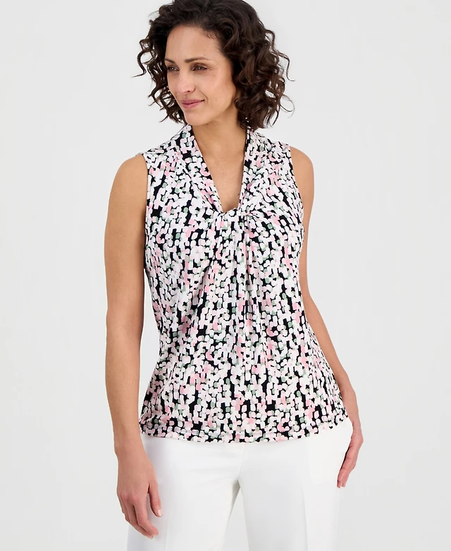 Kasper Women's Printed Pleat-Neck 3/4-Sleeve Top