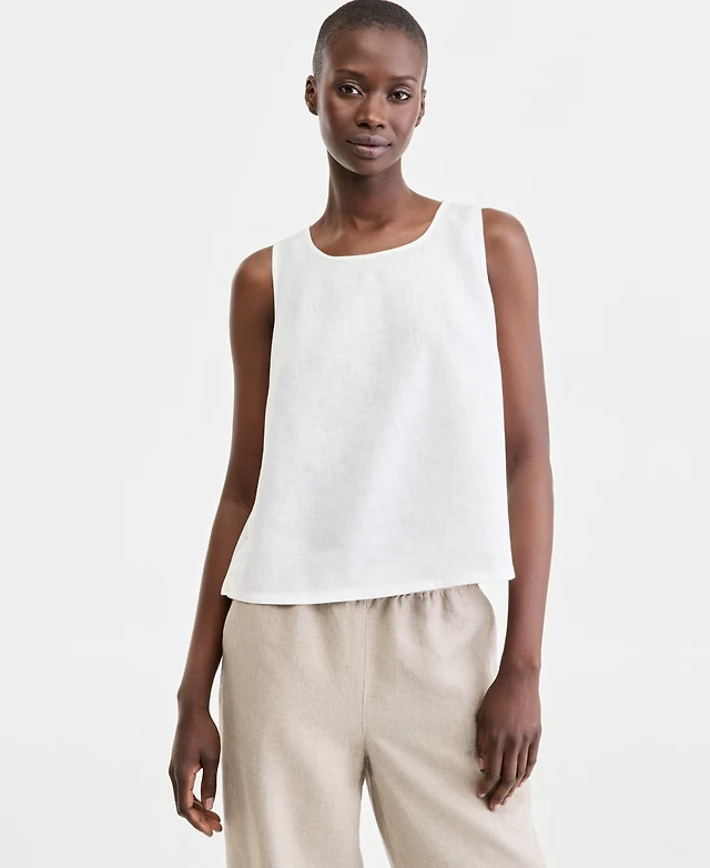 Charter Club Women's 100% Linen Pleated-Back Sleeveless Top, Macy's Exclusive