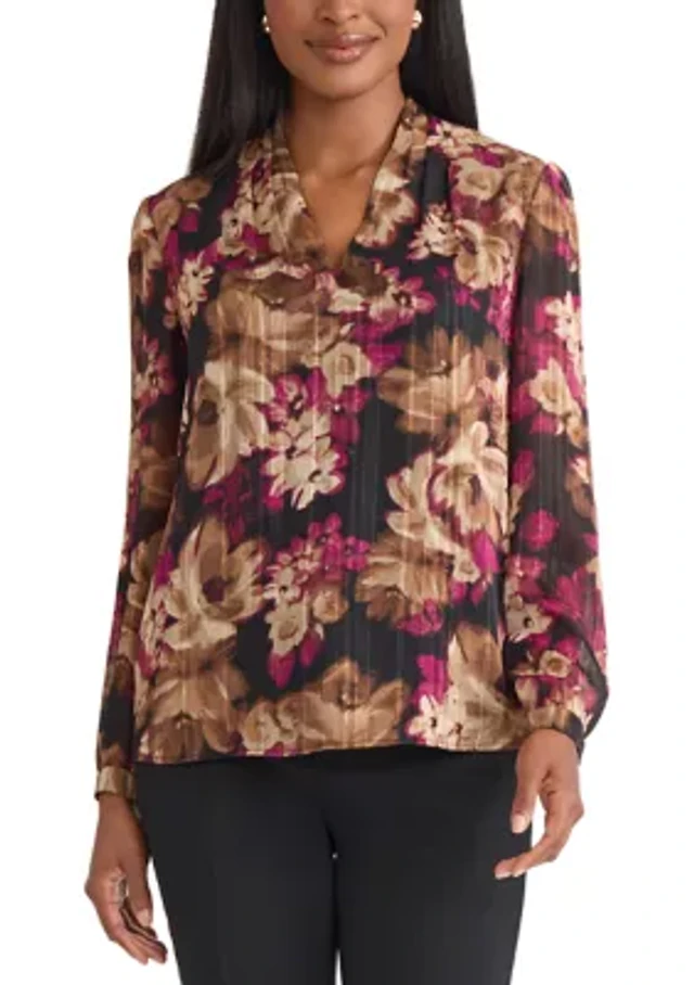 Women's Floral Print Long Sleeve V-Neck Blouse