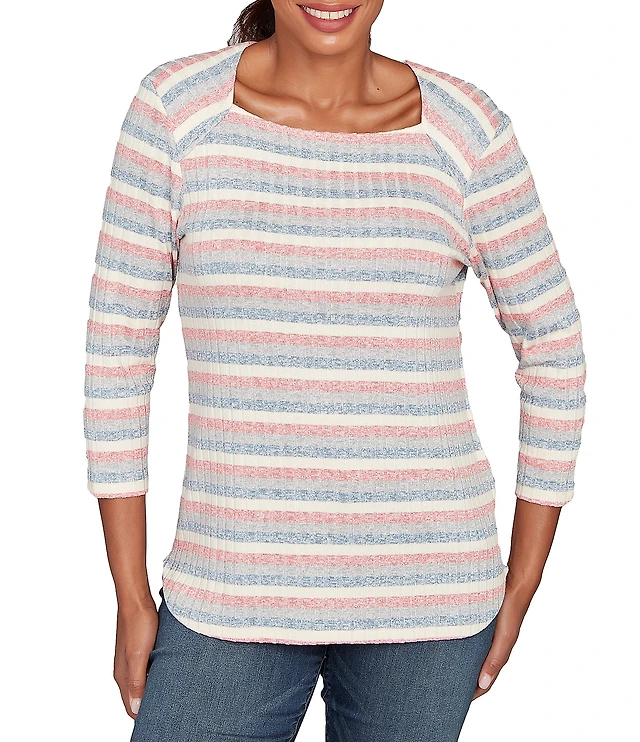 Ruby Rd. Petite Size Chenille Space-Dye Cowl Neck 3/4 Sleeve Top