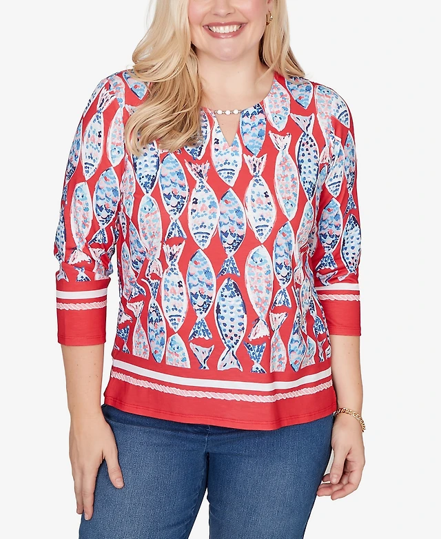 Alfred Dunner Plus Classic Medallion Bordered Square Neck Top