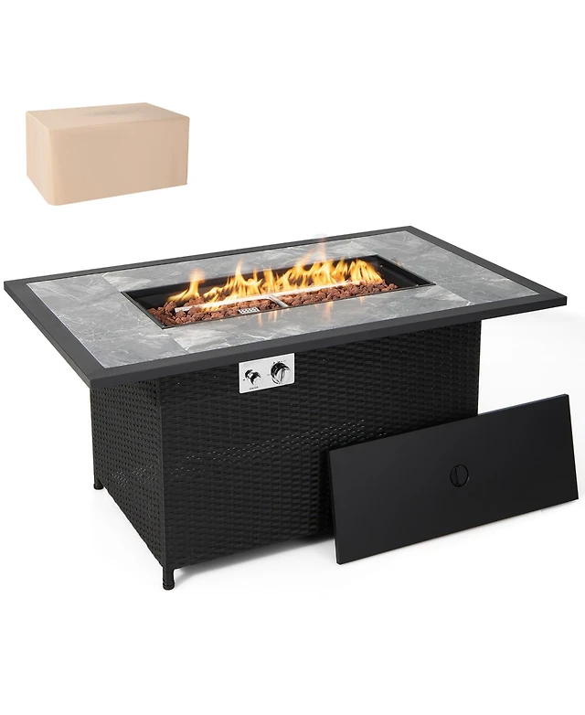 Gouun 52 Inches Outdoor Wicker Gas Fire Pit Propane Fire Table with Cover