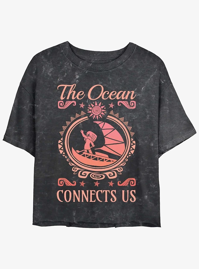Disney Moana The Ocean Connect Us Womens Mineral Wash Crop T-Shirt