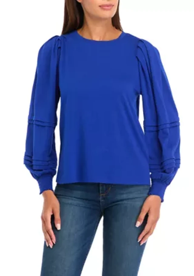 Rafaella Plus Metallic Puff Long Sleeve Crew Neck Top