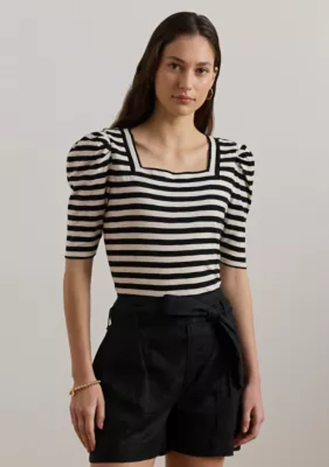 Karl Lagerfeld Paris Petite Striped Puff-Sleeve Shirt